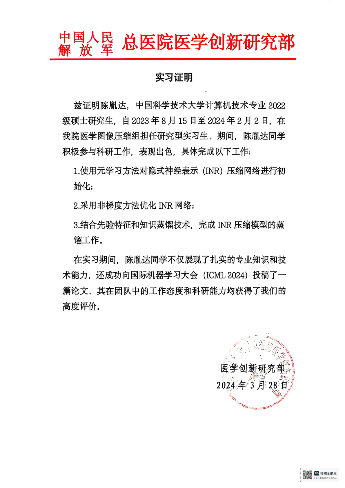 🧭 I have the immense privilege of being advised by Prof. Feng Wu (吴枫, CAE Academician, IEEE Fellow) and Prof. Zhiwei Xiong (熊志伟) at USTC, and co-supervised by Prof. Xiaoou Tang (汤晓鸥, IEEE Fellow) at the Shanghai AI Lab. I also have the honor to collaborate closely with Prof. Dong Liu (刘东), Prof. Li Li (李礼), and Prof. Zhihai He (何志海, IEEE Fellow). Additionally, I’ve been fortunate to conduct research internships at Imperial College London with Dr. Rossella Arcucci and Dr. Che Liu (刘澈), and the PLA General Hospital (301 Hospital) with Prof. Qionghai Dai (戴琼海, CAE Academician, IEEE Fellow).