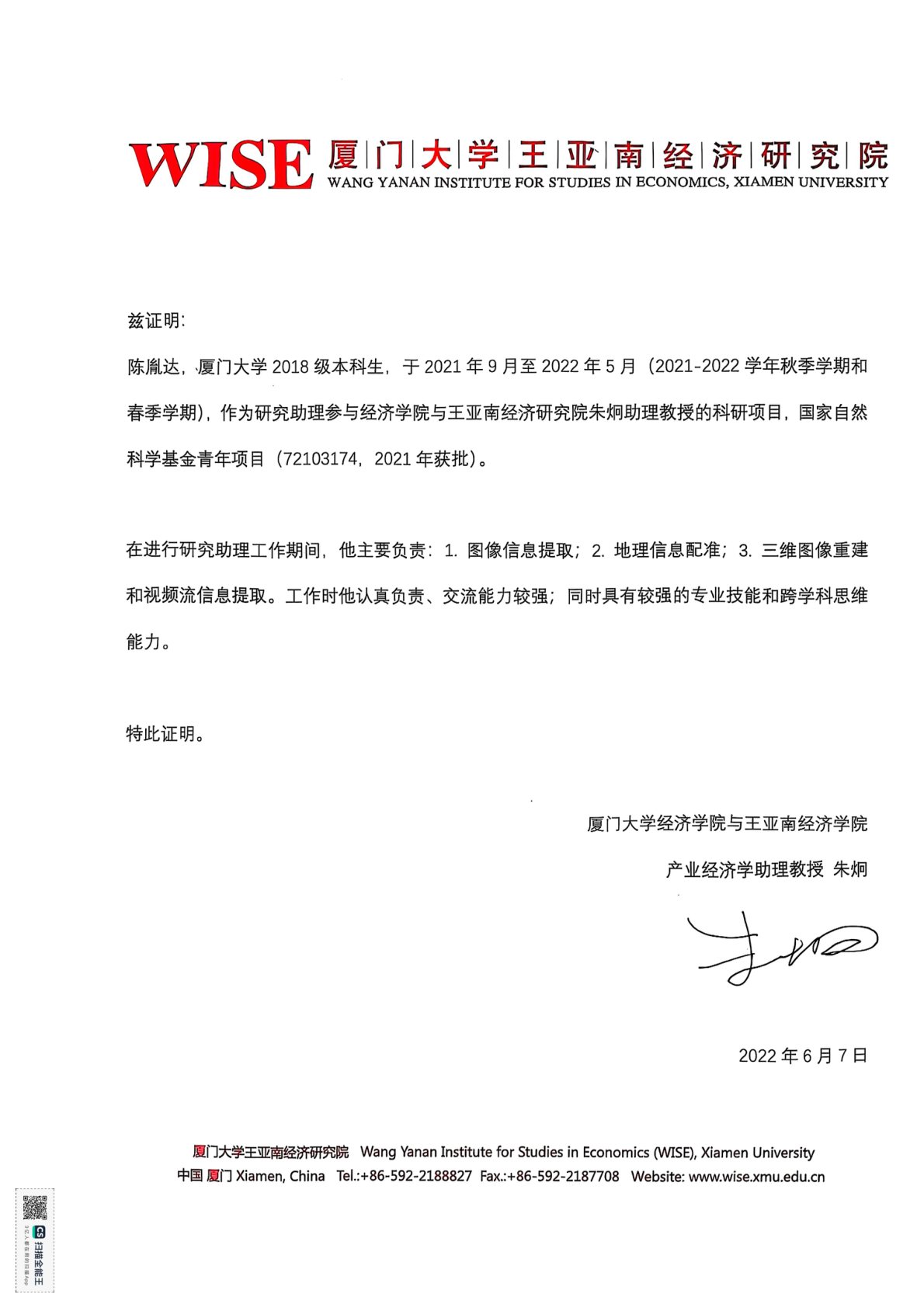 - Assisted Associate Prof. Jiong Zhu in national land economic statistics research